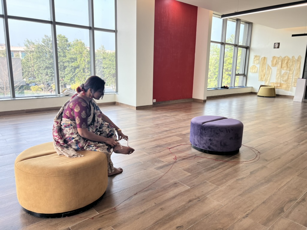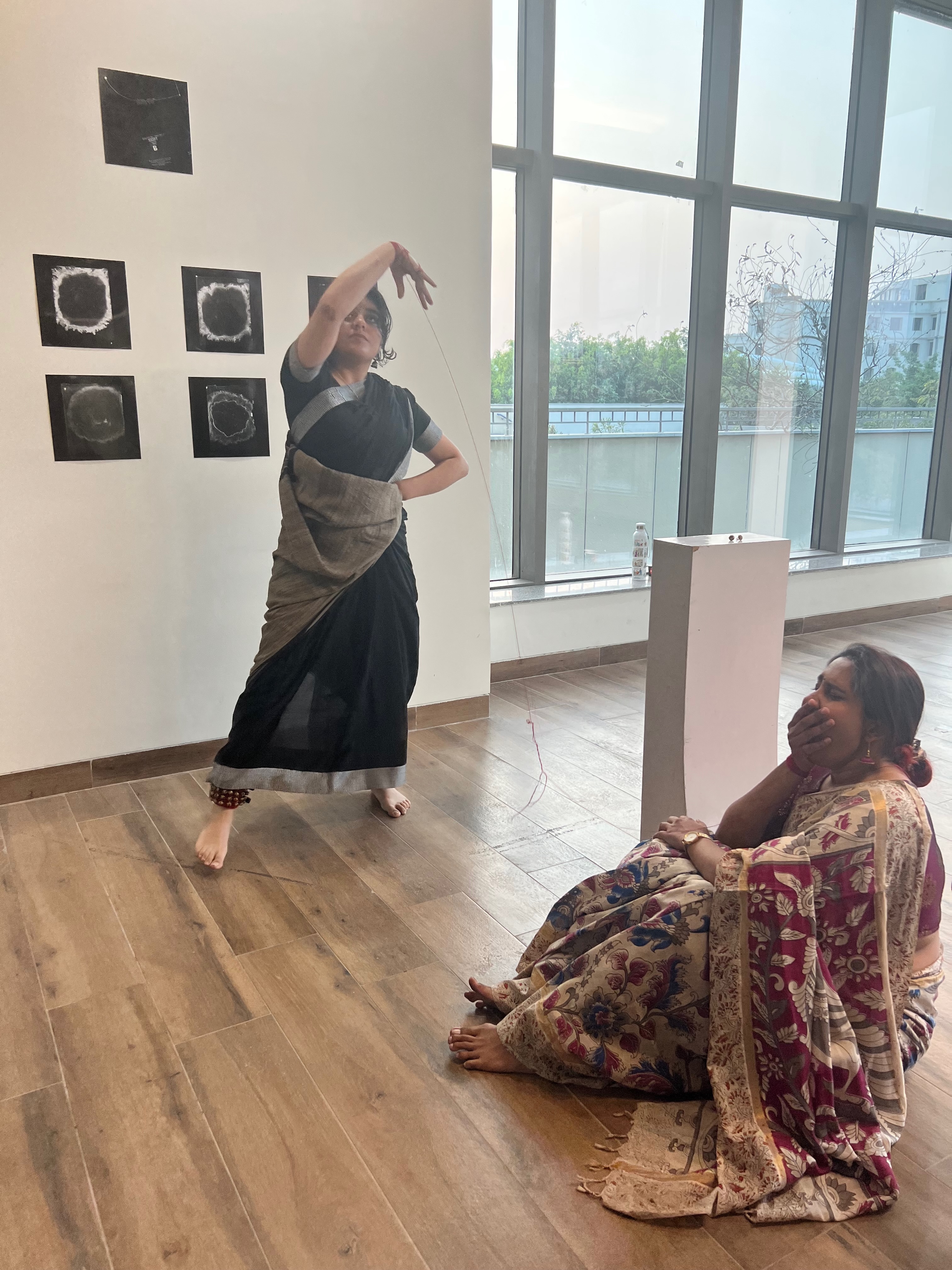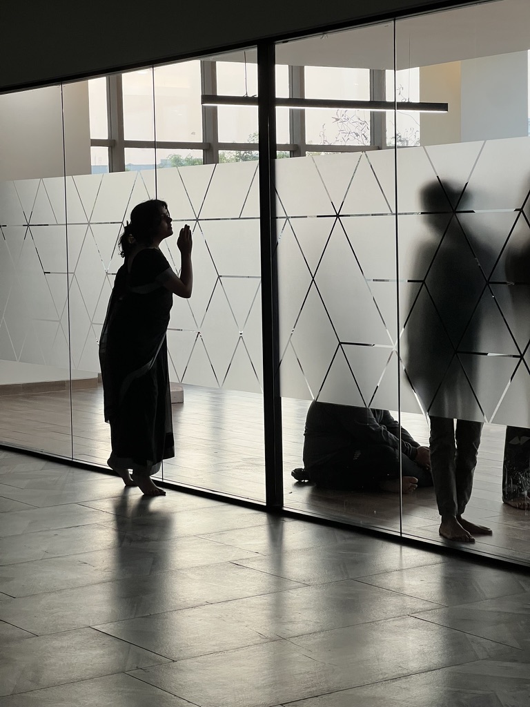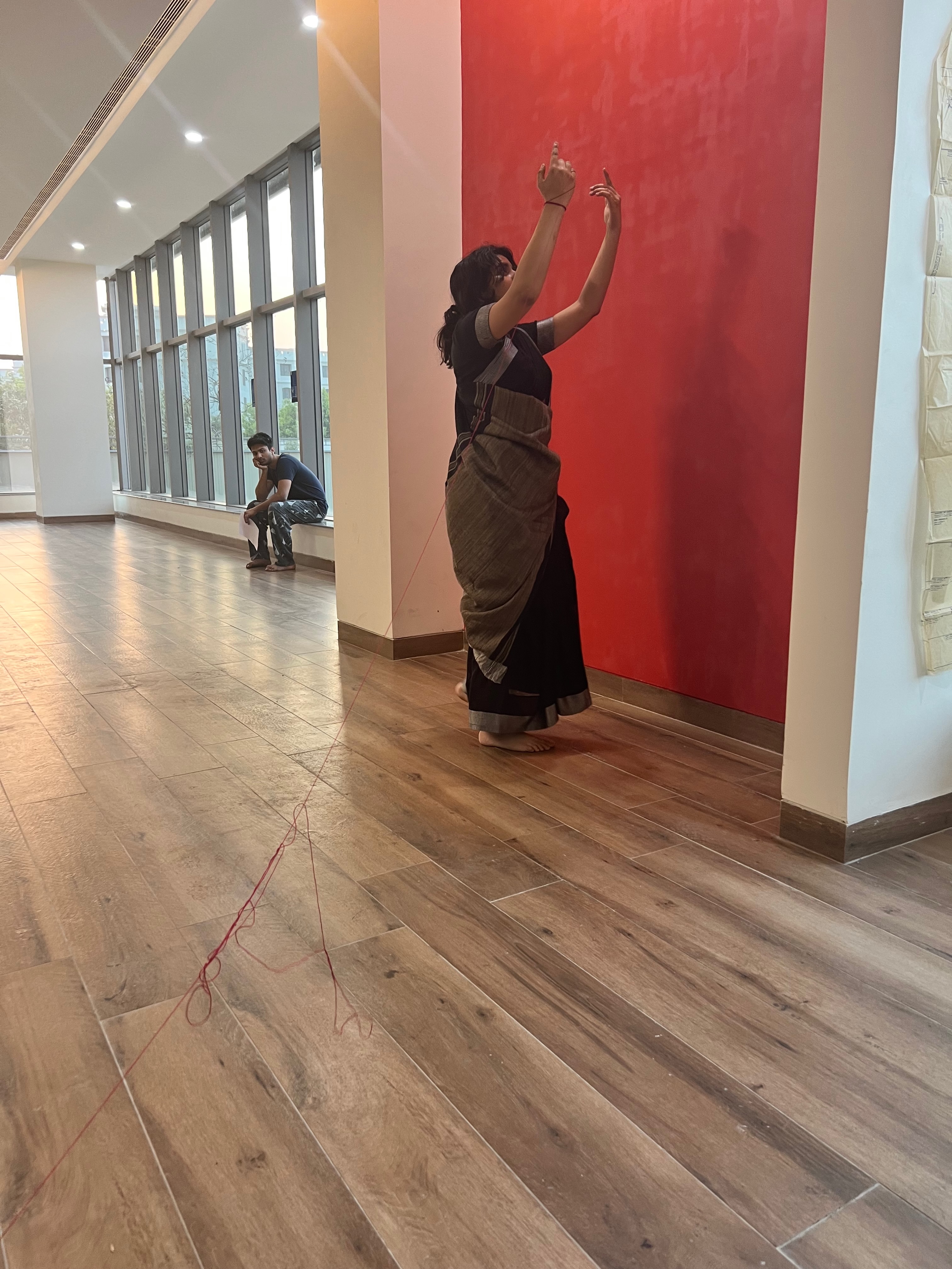 “Interventions in Light” is my third installation at Shiv Nadar University, Greater Noida, India presented over a two day period during February 2025. This site-referential piece, located in the UAC Window Space Gallery showcased “Tarang Sangini”, a two-part collaboration with original choreography by dancers, Garima Mamtani, Ananya Chaurasia and Kishore Kumar Palaniswami.