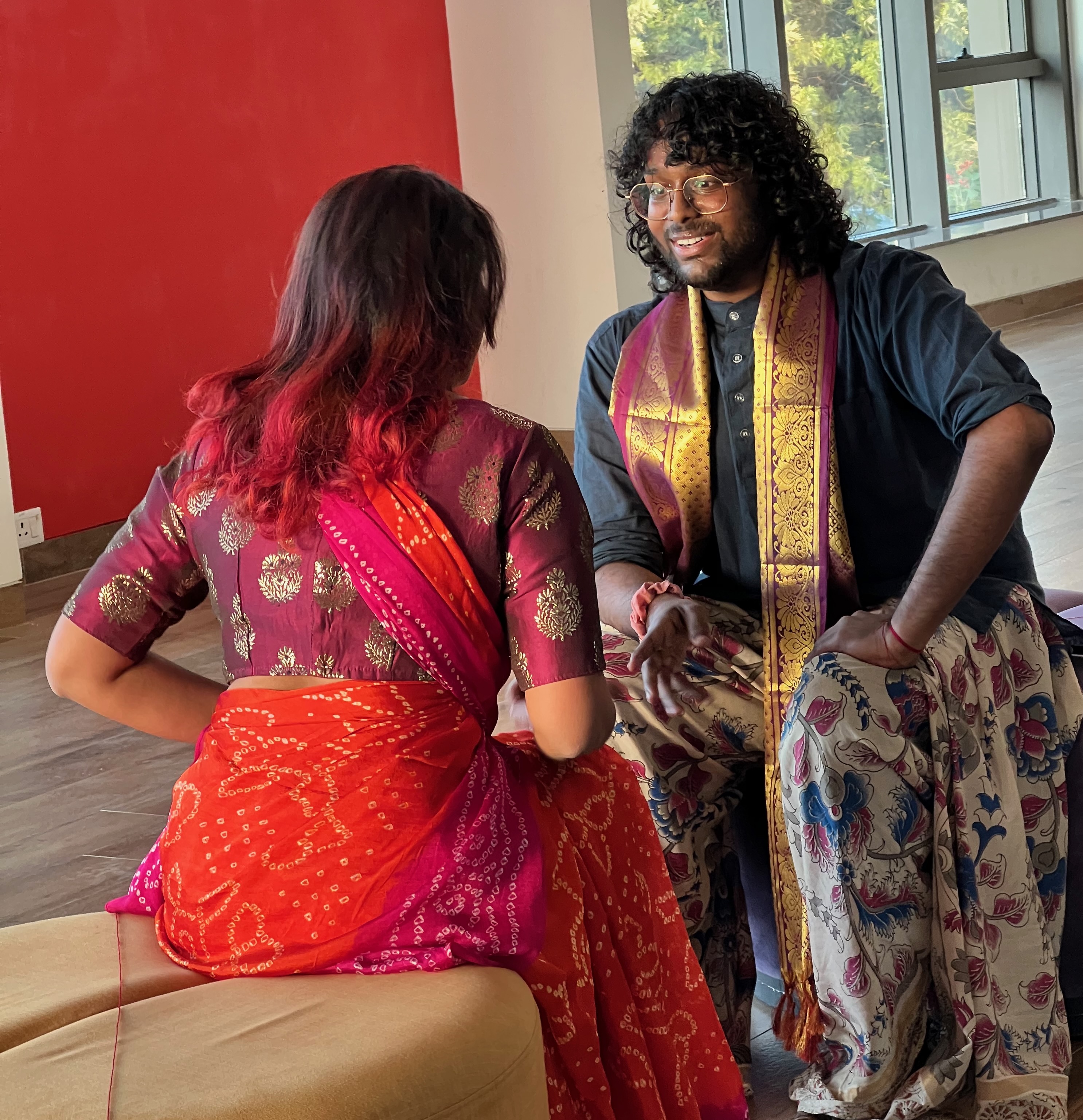 BIO: Garima Mamtani is a second year Physics major at SNU trained in Kanchipuram style of Bharatnatyam for 14 years. Ananya Chaurasia is a fourth year IR major, trained in Odissi for 18 years. Both have a Visharad in their respective forms, which is equivalent to a Bachelors degree. Kishore Kumar Palaniswami. is a fourth year Physics major, and new to the art of Bharatnatyam. He has finished his Arangetram for the Saraswati Veena and has been a vocalist for 4 years.
